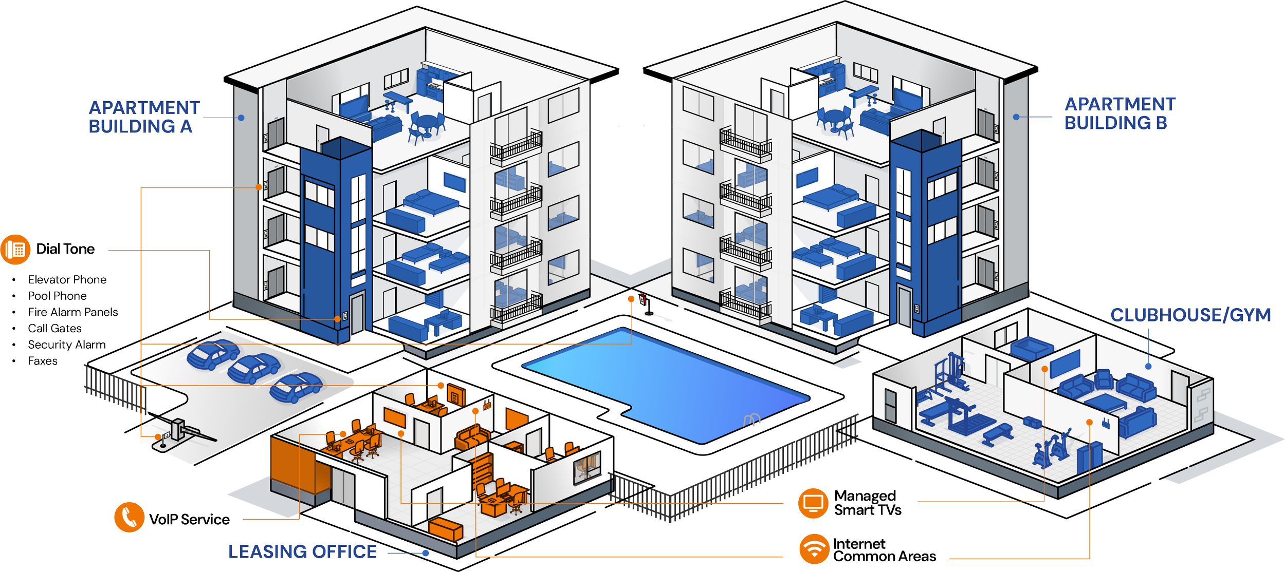 We standardize voice, internet, and dial tone across multifamily assets, delivering immediate OPEX reduction with zero CAPEX.